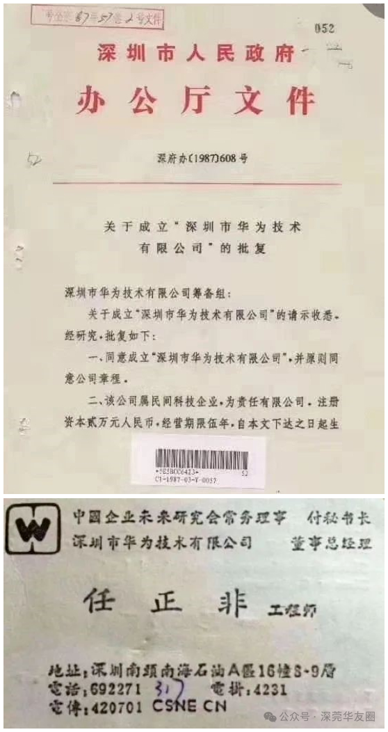任正非与五位合伙人共同投资成立深圳市华为技术有限公司,注册资本仅2万元。